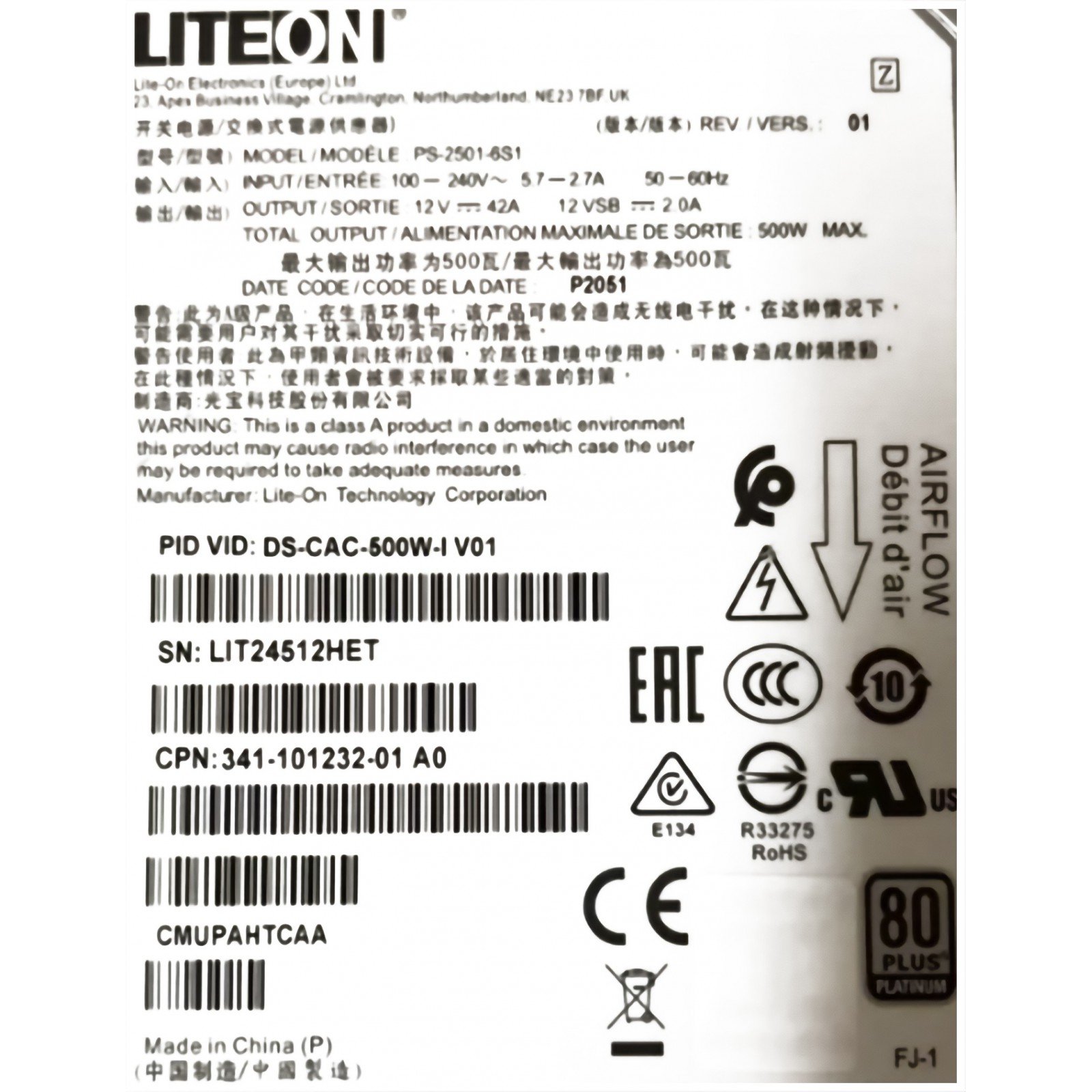 Lite-On PS-2501-6S1 DS-CAC-500W-I 341-101232-01 A0 500w