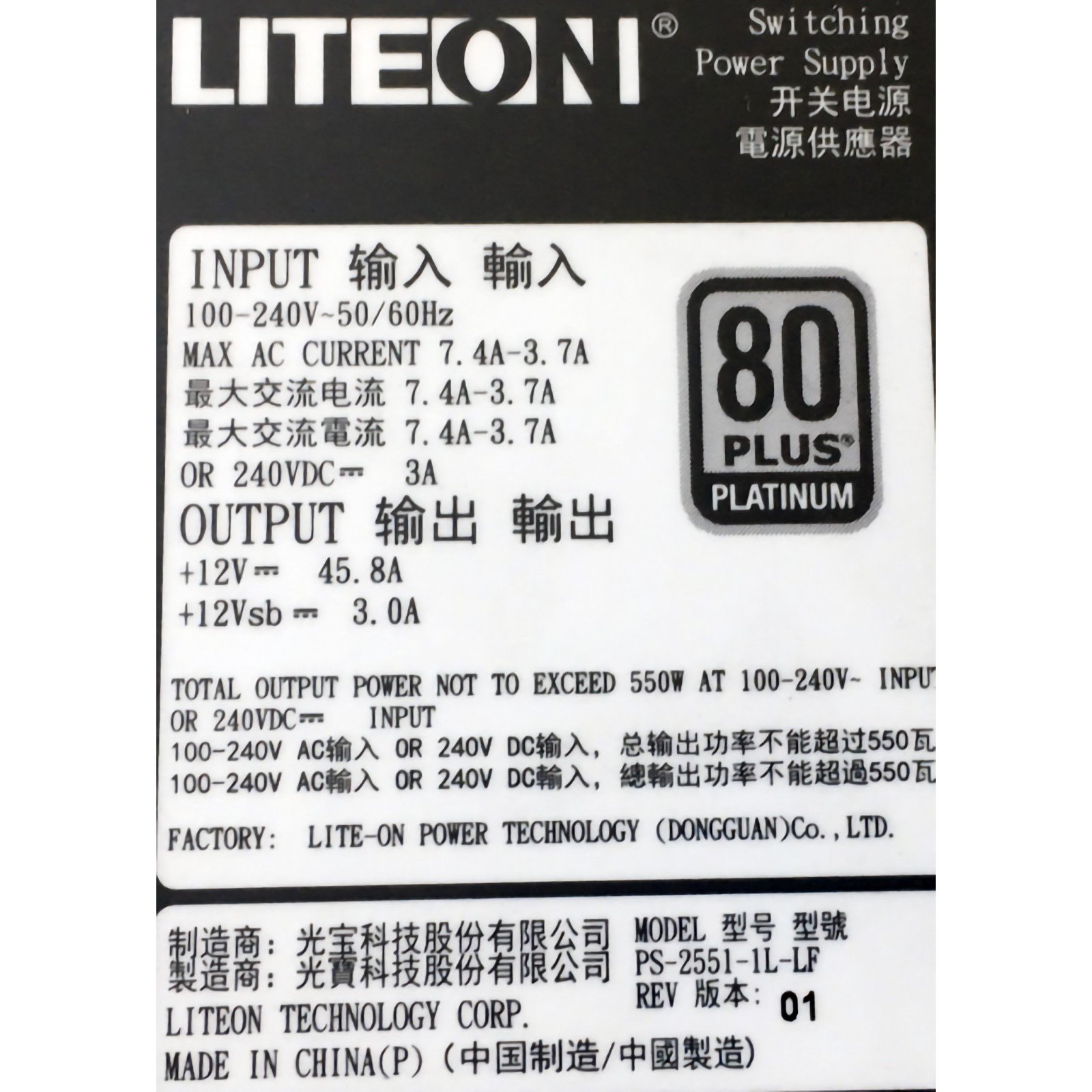 Lite-On PS-2551-1L-LF 550w
